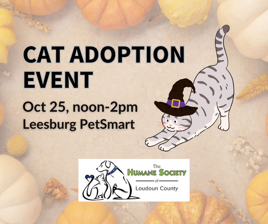 HSLC has many cats and kitties hoping to find their furr-ever families. Come meet them at the PetSmart in Leesburg from noon to 2pm on Saturday, October 25. For a sneak peek of our adoptable animals, please visit the Humane Society of Loudoun County website!