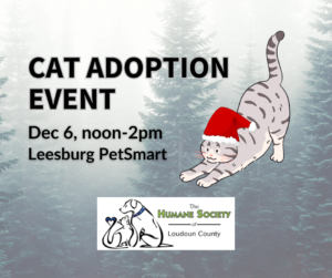 HSLC has many cats and kitties hoping to find their furr-ever families. Come meet them at the PetSmart in Leesburg from noon to 2pm on Saturday, December 6. For a sneak peek of our adoptable animals, please visit the Humane Society of Loudoun County website!