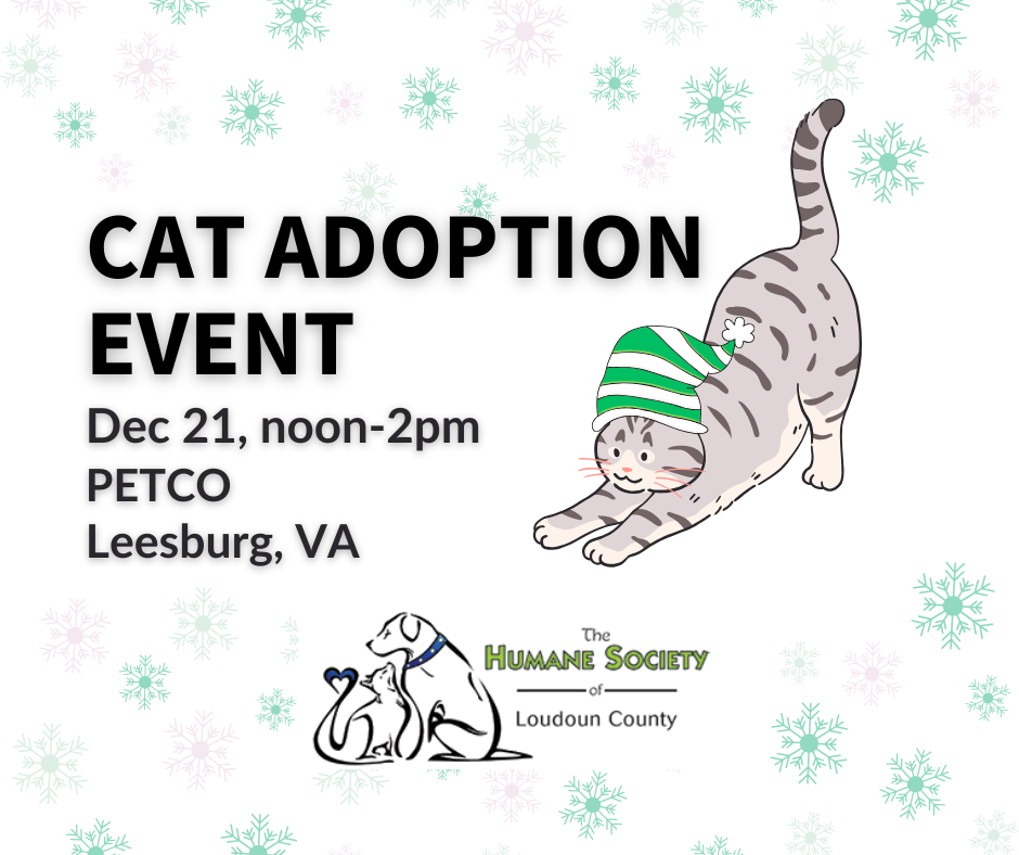 HSLC has many cats and kitties hoping to find their furr-ever families. Come meet them at the Petco in Leesburg from noon to 2pm on Sunday, December 21. For a sneak peek of our adoptable animals, please visit the Humane Society of Loudoun County website!