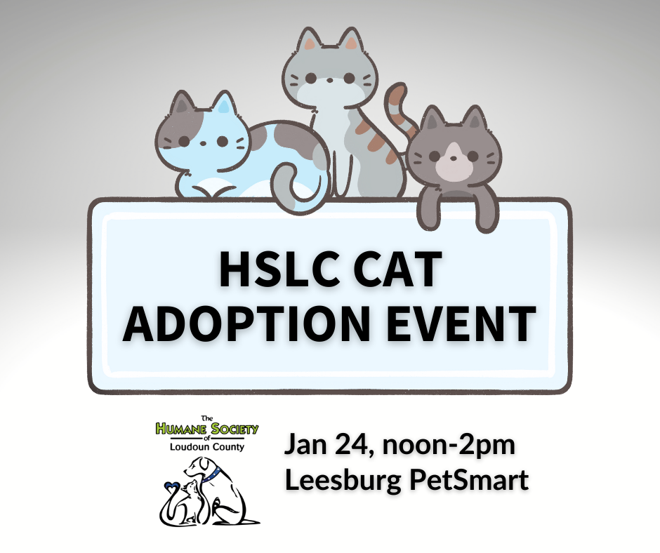 HSLC has many cats and kitties hoping to find their furr-ever families. Come meet them at the PetSmart in Leesburg from noon to 2pm on Saturday, January 24. For a sneak peek of our adoptable animals, please visit the Humane Society of Loudoun County website!