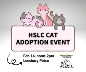 Find your PURR-fect match at our special Valentine’s Day adoption event! HSLC has many cats and kitties hoping to find their furr-ever families. Come meet them at the Petco in Leesburg from noon to 2pm on Saturday, February 14. For a sneak peek of our adoptable animals, please visit the Humane Society of Loudoun County website!